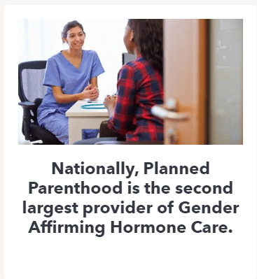 Planned Parenthood even has instructive videos on how to do the hormone injections. But Planned Parenthood does not merely provide services to people who want to transition, their website indicates they will “fight” and “organize” for them and they “will not rest”. This is what our taxpayer dollars go toward, advancing the transgender movement and its dangerous and deadly “treatments” that separate confused people from healthy body parts and put them on hormone blockers and opposite sex hormones propelling them into a life of chemical and surgical impersonation of the opposite sex. No effort is made to affirm the biological gender at any point.