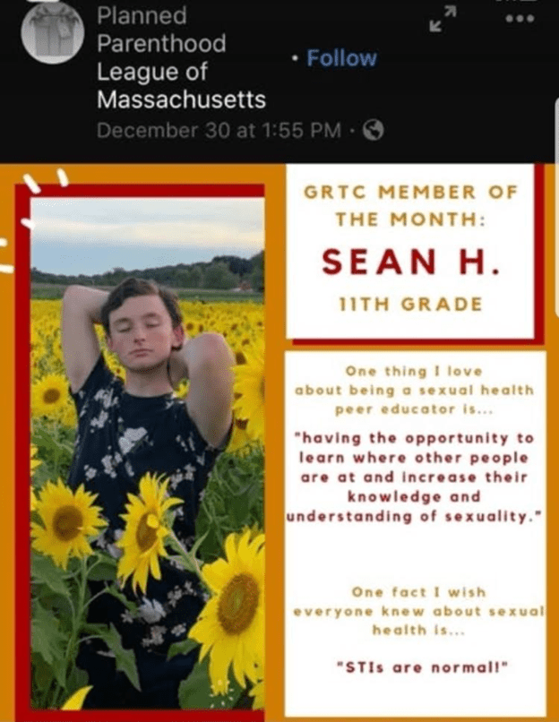 Planned Parenthood League of Massachusetts recently shared on its social media their Get Real Teen Council member of the month. For the month of December they featured Sean H., an 11th grader. Sean is a sexual health peer educator. That’s right teens educating other teens about sexuality with the coaching of Planned Parenthood. Sean says one fact he wished everyone knew about sexual health is that “STIs (sexually transmitted diseases) are normal”.