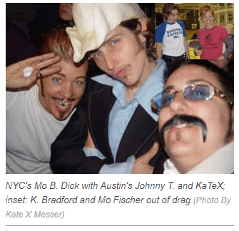 Ms. Messer was the “Gay Place” column writer for Austin Chronicle before joining Flannigan’s office. She also was a member of the lesbian band “Power Snatch”. In this article she talks about her experience as a “drag king” in which she alludes to wearing chest binder and a packer or “package” (warning explicit language).