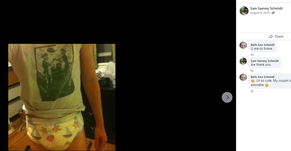 Facebook post by the man who the library said was her son on Facebook, this appears to be a man in a diaper.