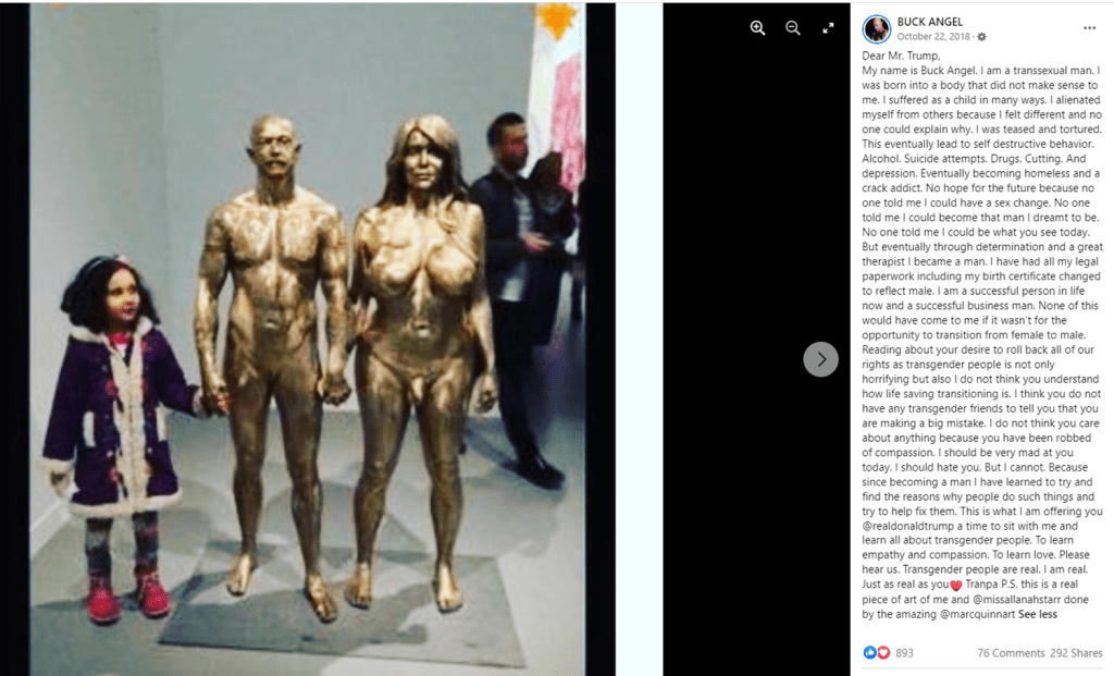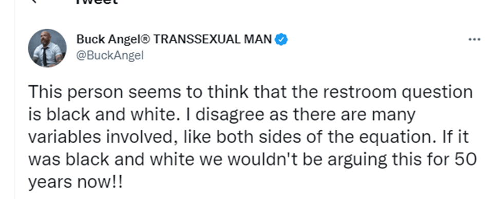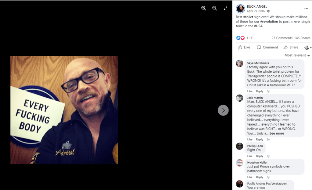 Buck Angel claims not to speak for the whole trans community, so why is anyone even talking to Buck Angel about transitioning minors? But Buck Angel has spoken for the trans community many times, including advocating for gender-neutral restrooms.