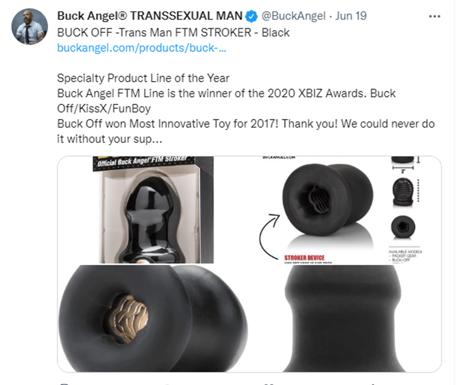 Nowadays, Buck Angel sells sex toys for “transmen”, and her porn is still available all over the web and according to GenderMapper, Buck Angel’s Only Fans is still active. File that under “Porn has no age”, if true. Yuck! You can see one of the sex toys that Buck Angel sells on the shelf behind Buck Angel in the interview with Fillman, who isn’t a conservative and seems to lean Libertarian.