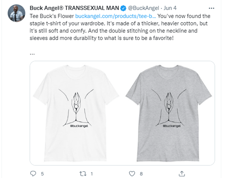 I wonder if the people who interview Buck Angel get some free merch? Will we see Debra Fillman or Charlie Kirk wearing this t-shirt?