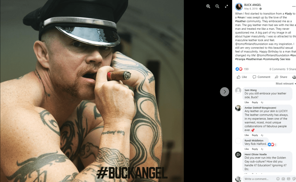 What exactly goes on at the leather daddy conventions? Pup Play, BDSM, anal hooking, all kinds of disgusting torture in the name of “sex positivity” as Buck Angel would call it. This is who social media influencers think we should listen to? How many young women have also been “swept into” the leather scene as they transitioned? How many young women have been influenced by pornography? Young women graduating high school a few years ago sought anal bleaching, pubic waxing, boob jobs, and vaginal beautification b/c of the influence of porn on the culture. How much so then has porn featuring transmen influenced young women? We all know that children are accessing porn at younger and younger ages now. Buck Angel does not get immunity for spreading harm through pornography simply because on one issue she now agrees with conservatives, kind of.