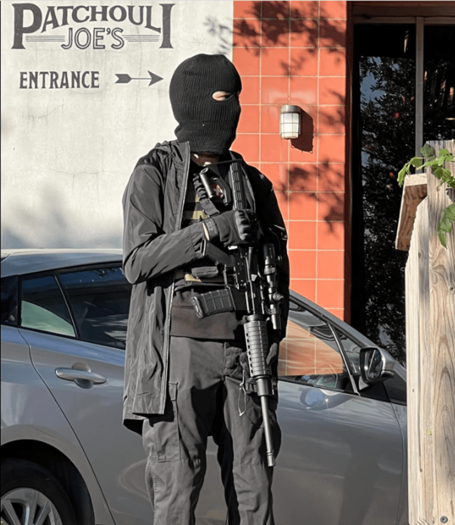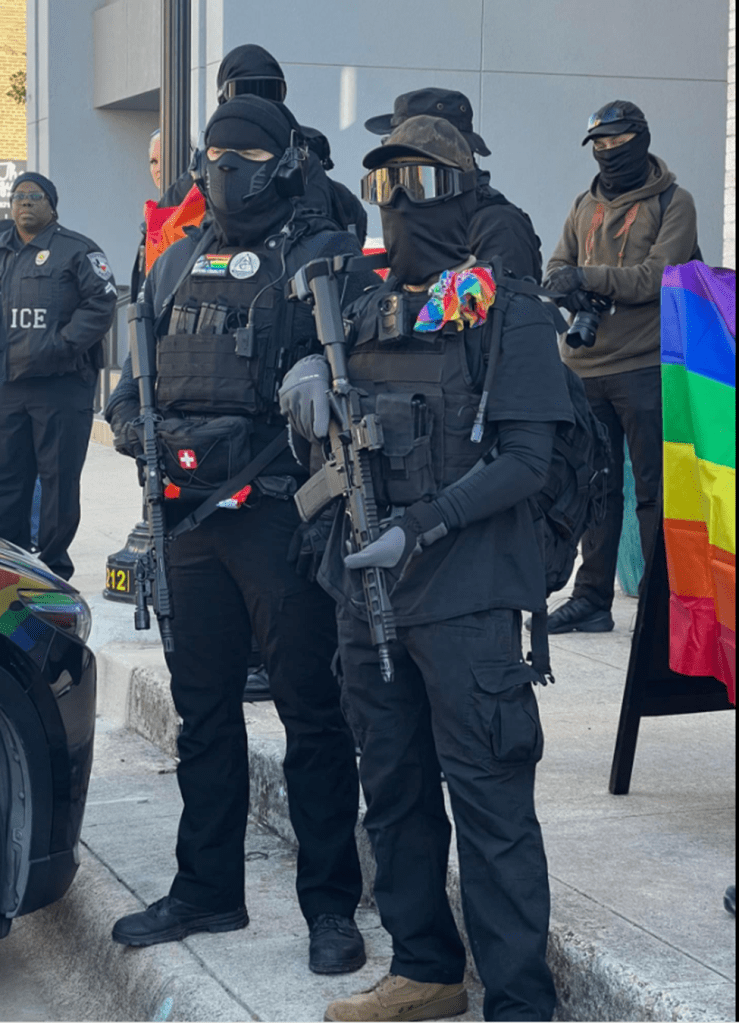 You may have heard of the term “Rainbow Brigade” or “Gay Mafia”, but have you heard of the “Gay Police”? That’s what the LGBTQ armed militia who were “protecting” the transgender grooming hour at the bookstore were referred to by at least one conservative protester at the event.