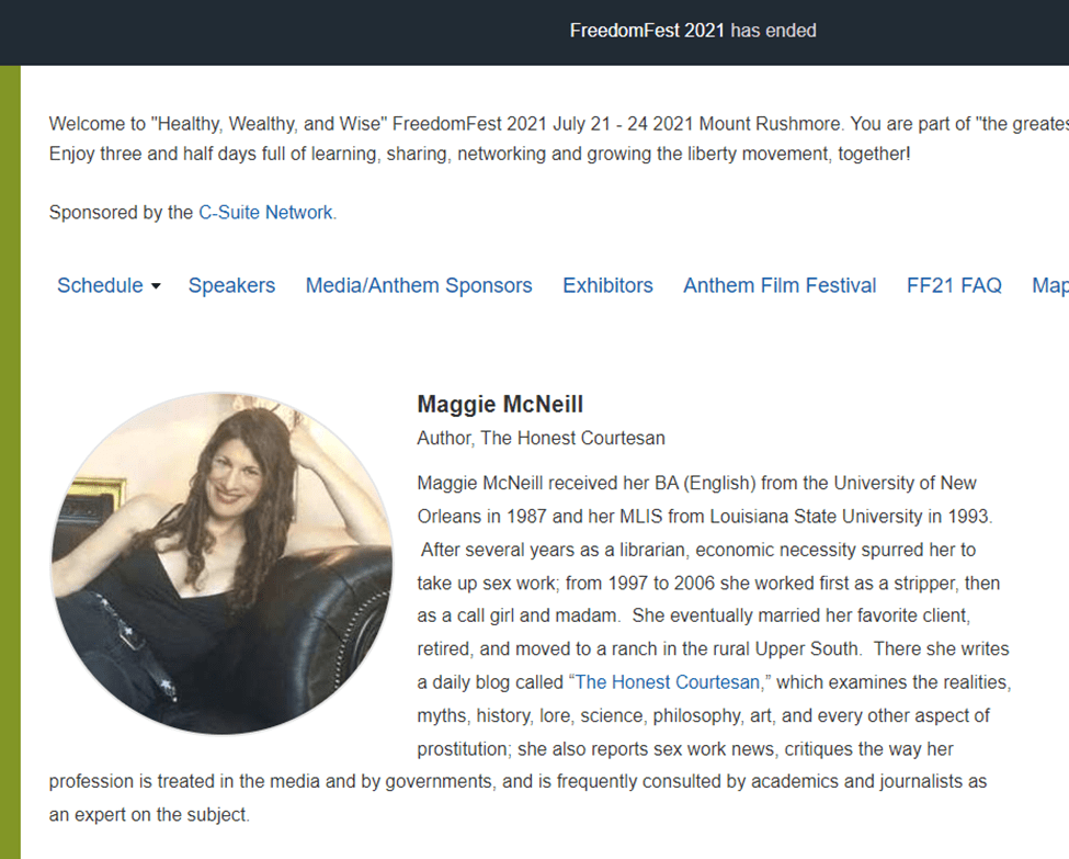 McNeill has been an author at Reason Magazine since at least 2014. She was also a speaker at FreedomFest, but the part about her being with Prostasia is not mentioned in her FreedomFest bio. Maybe it was left out in order to protect the innocence of the event organizers… or maybe the event organizers removed it because of the stigma associated with pedophile apologists.
