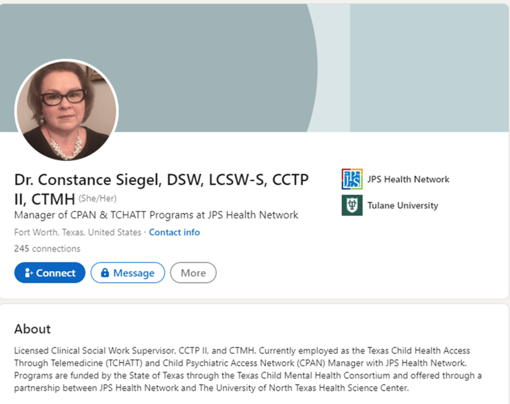 MadMommaBear began to wonder if there might be any other bias, particularly among the staff that interacts with children in the schools. She found that Constance Siegel (TCHATT and CPAN manager) at JPS Health Network is an out lesbian who is married to a “transwoman” according to this article at Dallas Voice. They identify as a “lesbian couple”. MMB is pretty sure that a man in a woman’s costume is not a woman, but the “experts” may disagree. While it may not be incredibly significant it is interesting. Dr Siegel manages the TCHATT and CPAN. Did she approve the training? But we should not consider this training to be simply the product of a rogue staffer.